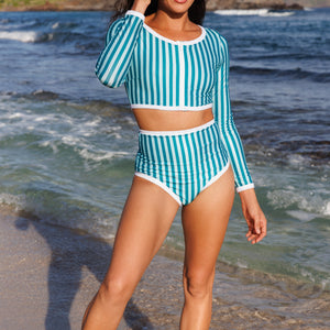 - At the Beach : Choose a long-sleeve swimsuit for full sun coverage and statement style.