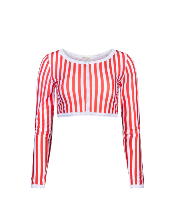 Long sleeve crop top Giulia Red stripes UPF 50+